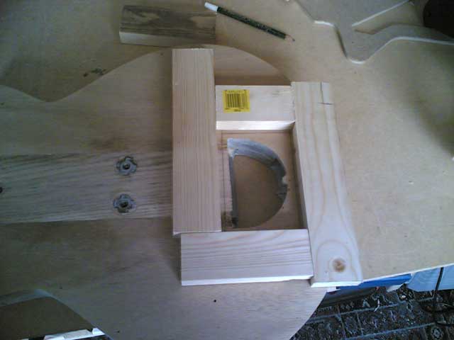 Finally for today, we screwed the bolt retainer to the oak centre. We felt we needed to do this prior to attaching the three blockboard sections together, as it would be more difficult to do so after.