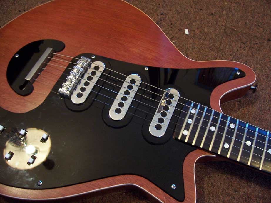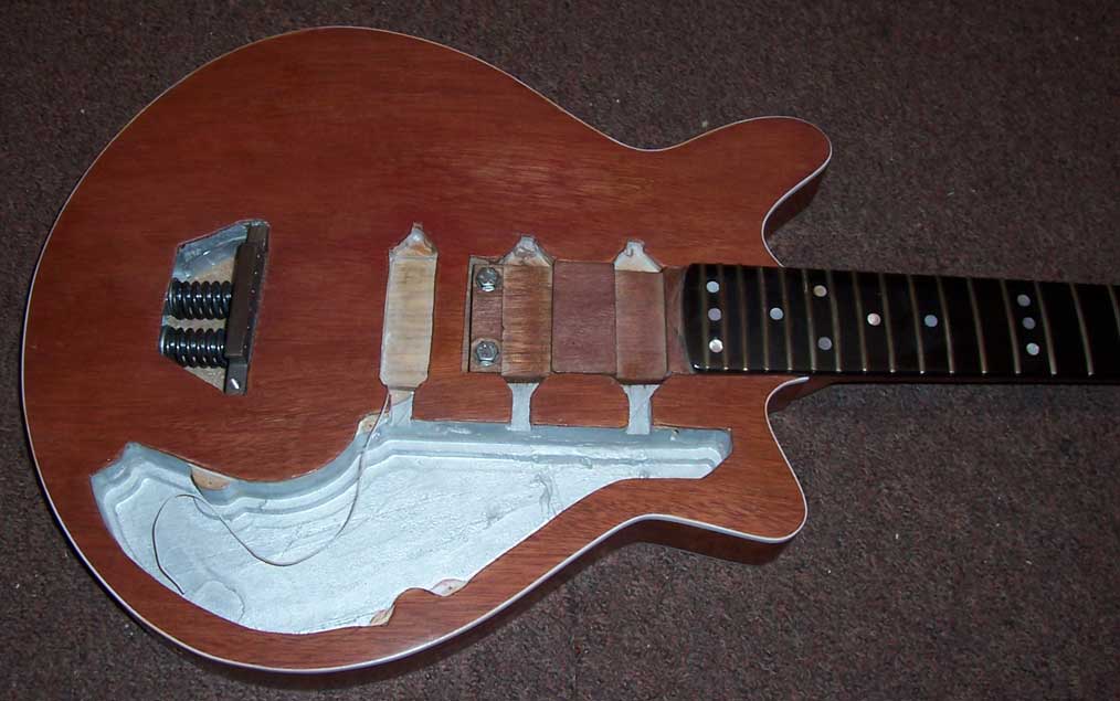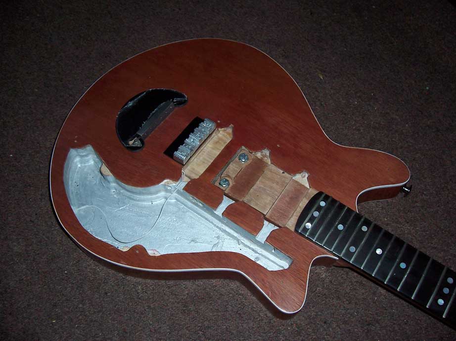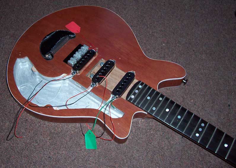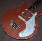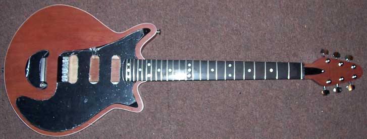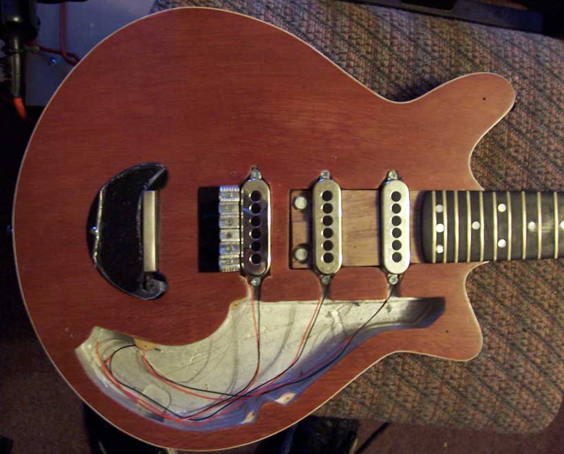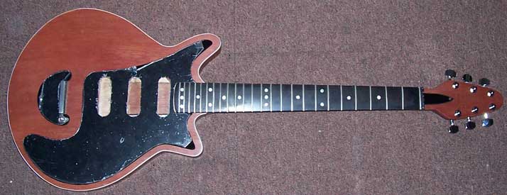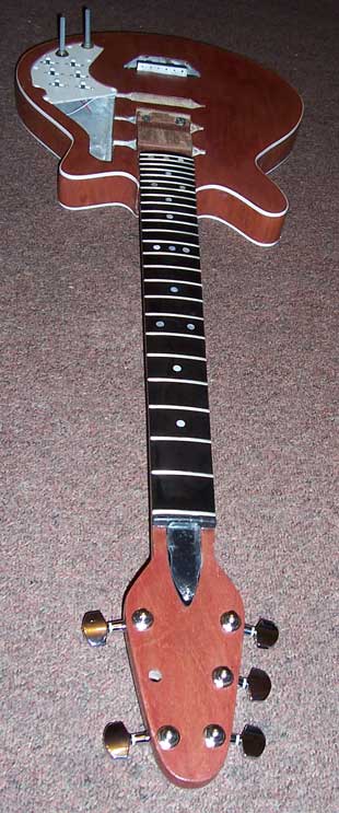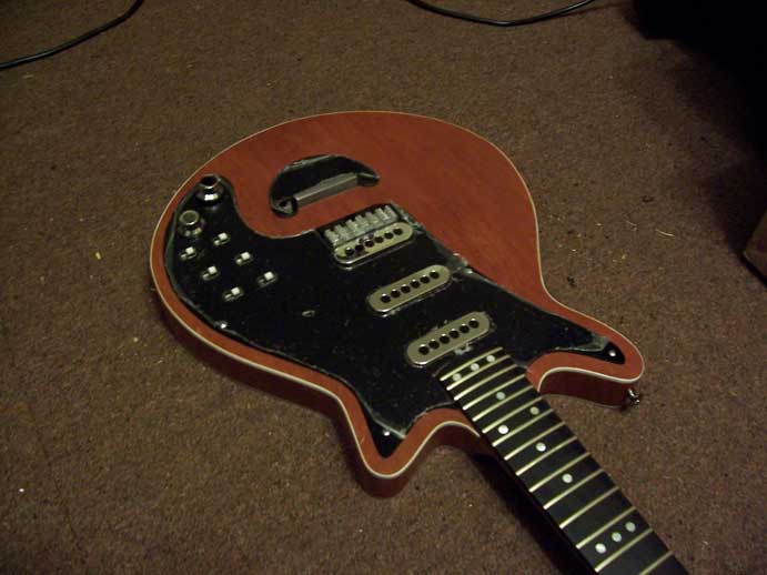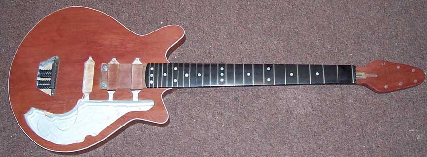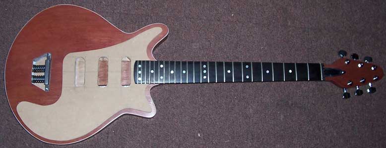 At the moment I do not have much time to do anything, but the very little I do have I have been working on the frets, bridge, and scratchplate. ALl the frets have now been put on the fretboard. I have also installed the tremolo.