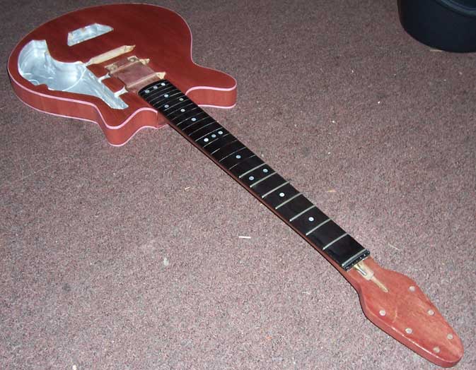 When the first coat had dried I scraped off the dye and the sanding sealer from the binding. Now it really started to look like the Red Special!