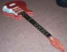 During the evening I got chance to do more on my RS. I firstly attempted to remove as much of the damage as possible, which was farely successful. I also finished off sanding the sides of the body, before applying the red mahogany dye to the entire body.