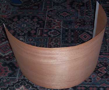 Whilst we were doing all this we left a pot of glue in a bowl of hot water. This will allow us the move the veneer exactly into place without 'getting stuck' because of the glue. Also, damping the veneer before you use it will make it more plyable, and easier to work with, and bend without cracking.