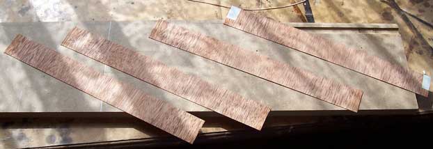 I didn't have much time today so I firstly removed all the masking tape from the body to reveal pur veneering efforts from the previous day. The results were very impressive. Although it does need a little cleanup as there were a few areas that glue had dripped, and where the veneer strips met, etc.