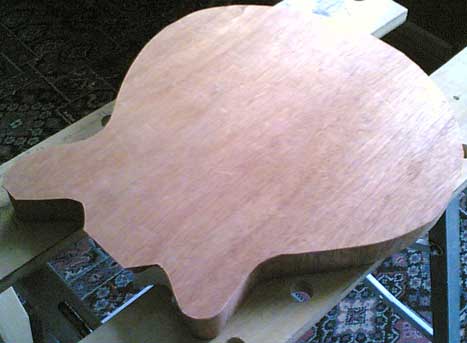Today we split some of the jobs between us. My girlfriend's dad sanded the neck down and prepared it for another coat of sanding sealer. Whilst he was doing that I cut out the veneer for both the front and back of the body.