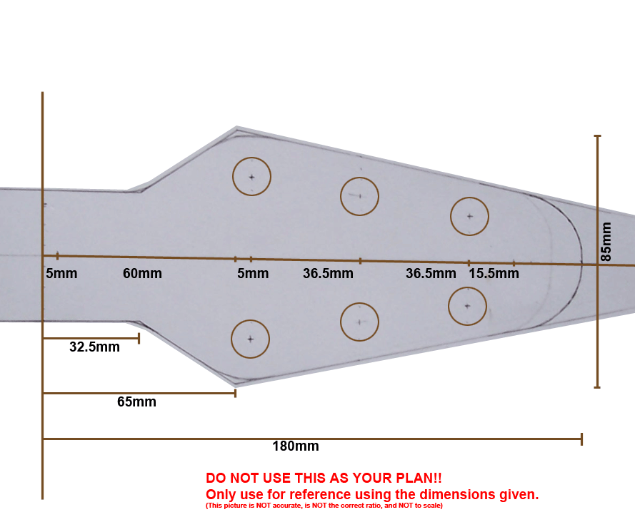 There are details of this headstock which I am sure you need to know about. The type of machine heads that you choose to use on this guitar may effect various aspects of the headstock. The headstock I have designed are based on the original headstock to work with machine heads that I have purchased.